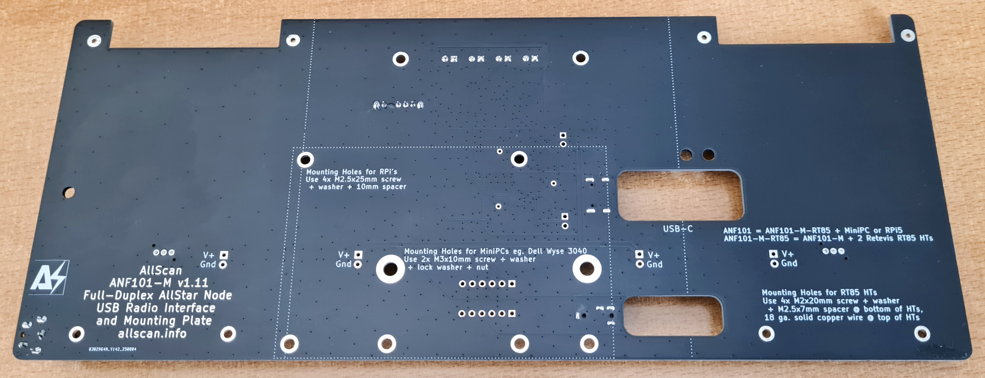 Sturdy copper-clad fiberglass perfect for mounting a MiniPC/RPi, URI141/142/145/150 and Retevis RT85 or similar HTs. Predrilled mounting and cable management holes make it very easy to build a complete ANF101. Large ground plane makes RFI issues a thing of the past