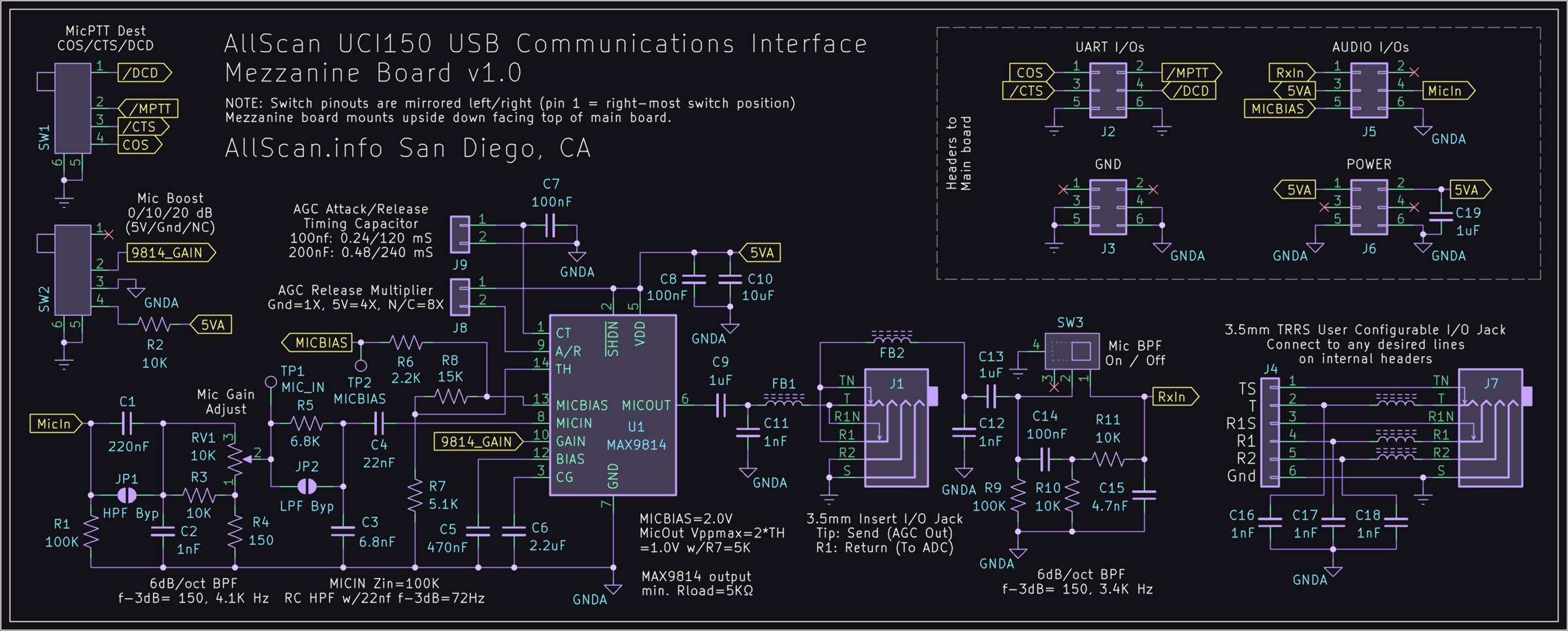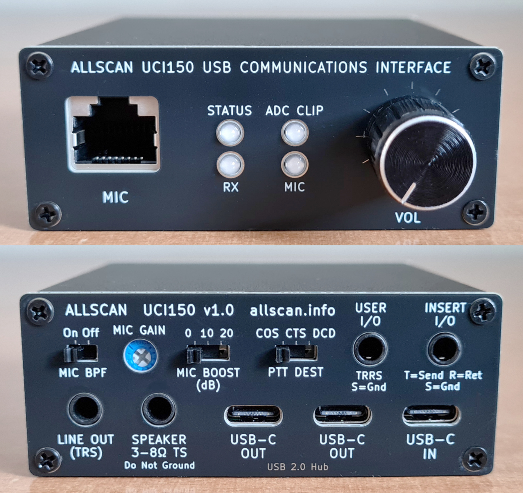 AllScan UCIs provide enhanced filtering of the mic power line to ensure the lowest possible noise with any type of mic. The UCI80 has a preset mic gain but the CM108 mic gain can be easily adjusted in the ASL rxmix setting or OS sound driver or other application settings. Other UCIs additionally provide a 0/10/20dB mic gain switch and gain adjustment potentiometer.
