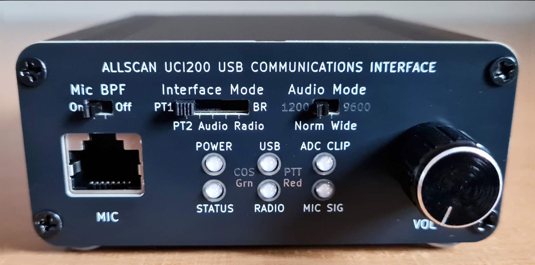 The AllScan UCI200 USB Communications Interface is a professional-grade USB interface that connects a radio, mic, speaker and USB host device, with unprecedented flexibility, setting a new standard for AllStar, DVSwitch, EchoLink and other Radio-Over-IP (ROIP) applications. The UCI200 is the world's first multi-mode USB interface product designed and optimized for use with ham and commercial mobile radios that also directly supports communications microphones, speakers and other audio equipment. Within AllStar and EchoLink, Audio+PTT interfaces are most commonly referred to as URIs (USB Radio Interfaces), but because the UCI200 also connects to communications mics and speakers, USB Communications Interface (UCI) is a more general term.